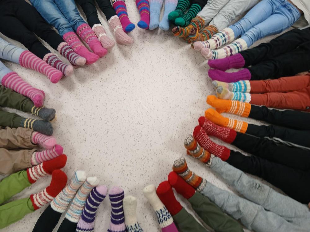 Taas on martat ja marttojen ystävät kutoneet ihastuttavia villasukkia esikoululaisille.